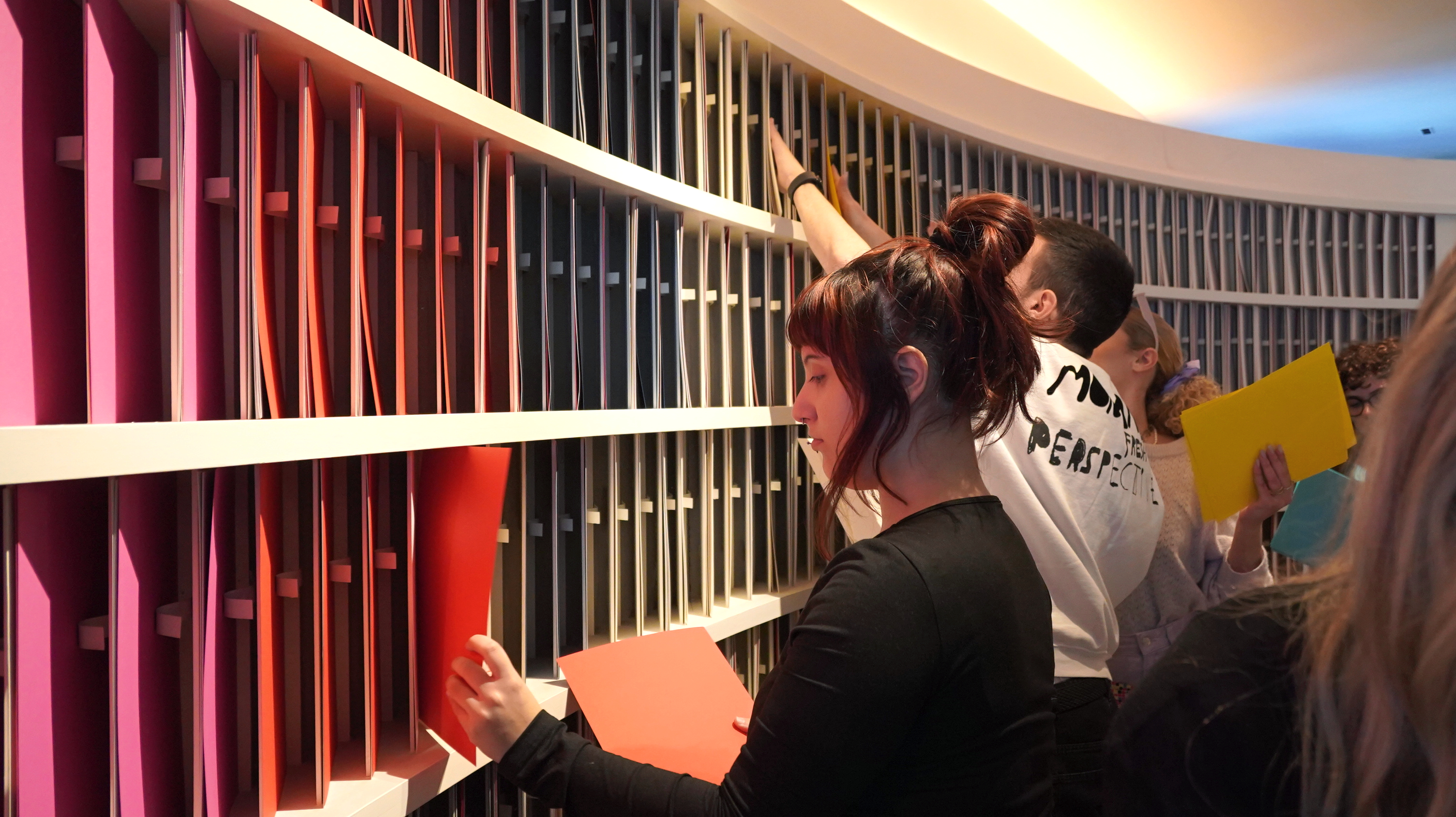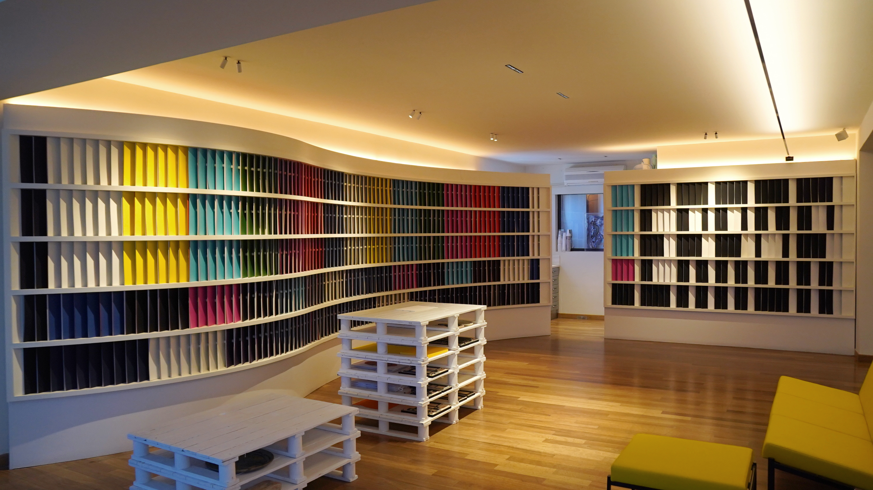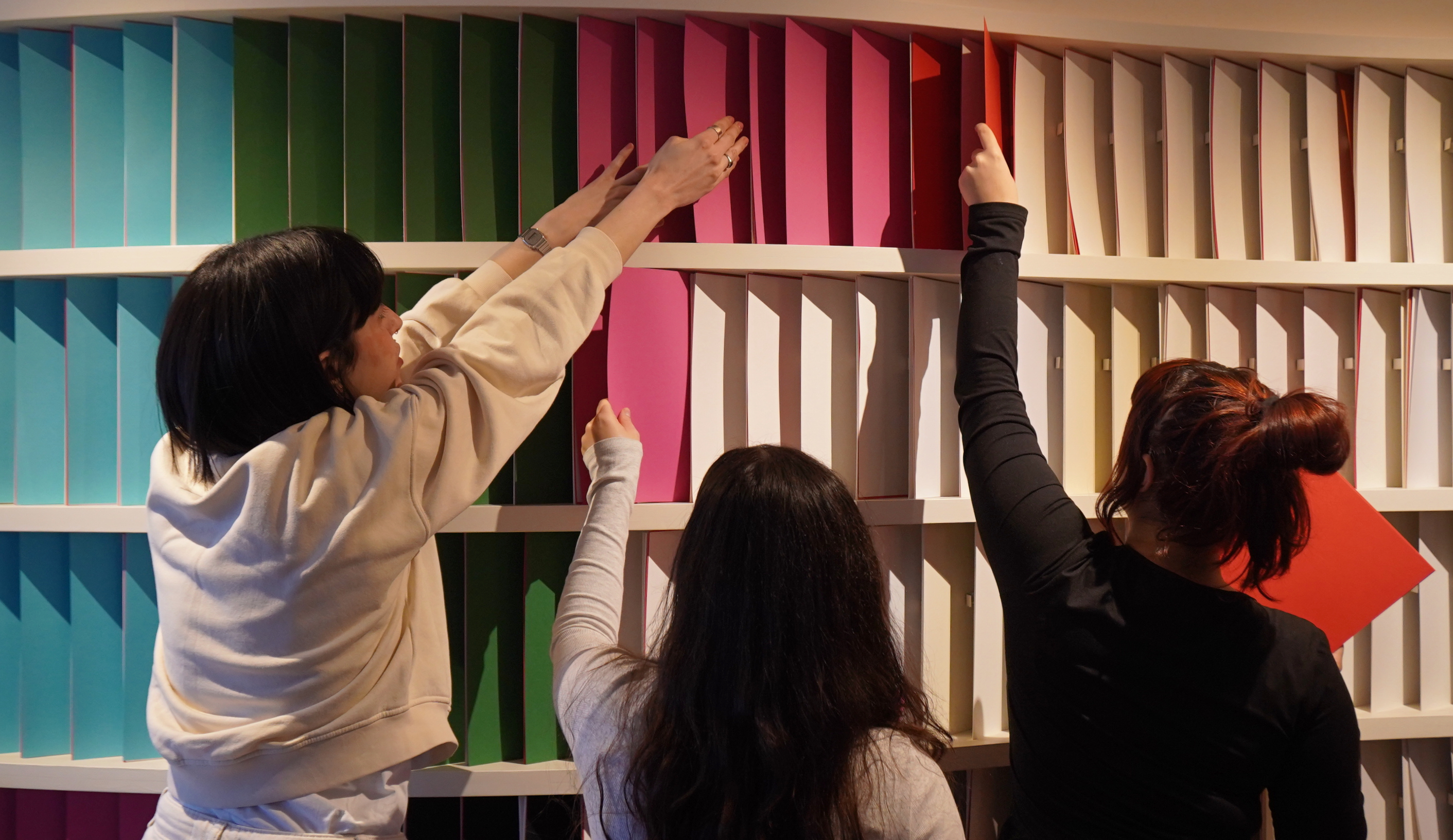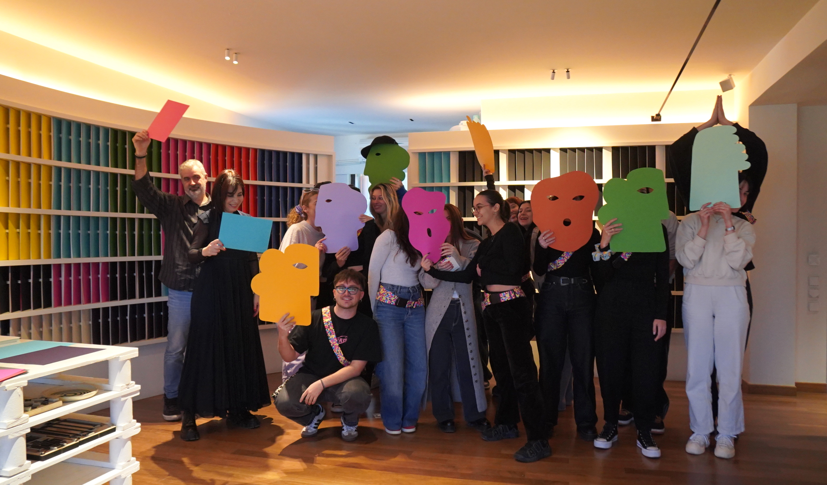 Στο showroom της Perrakis Papers, φοιτητές του 2ου έτους Γραφιστικής του Vakalo Art & Design College μετέτρεψαν την αισθητική των digital glitches σε μια τρισδιάστατη εγκατάσταση από φύλλα Α4 σε χρωματισμούς της Colorplan.